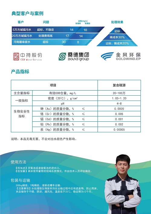 本品具有反應快、吸收快、零下不結冰的特點,尤其適合我國北方冬季水廠使用。在城鎮污水、河道治理、印染、食品、養殖、屠宰、電鍍、化工、垃圾滲濾液等行業廢水總氮處理上表現優秀。